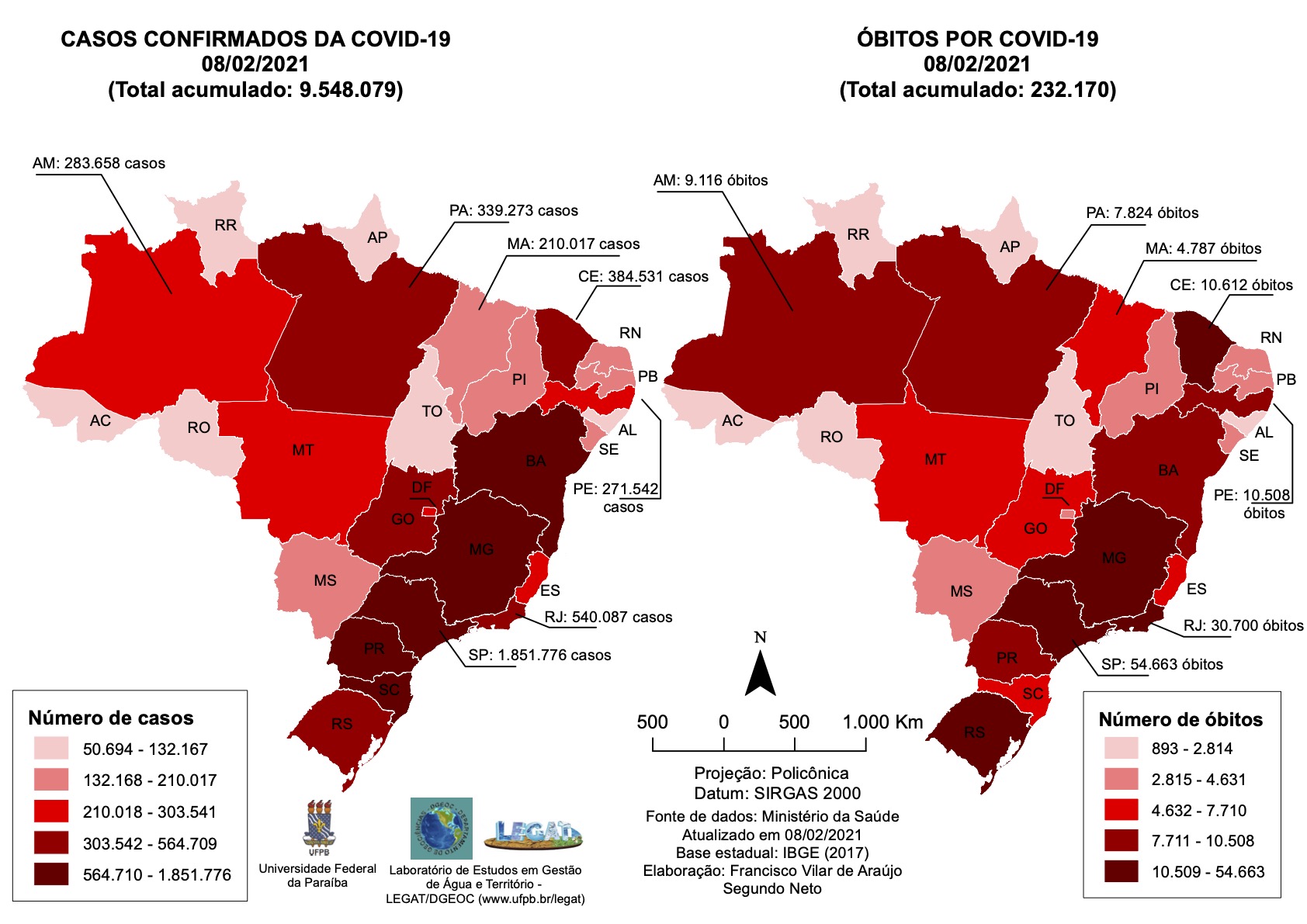 Especialmente en el caso brasileño, el día 8 de febrero de 2021, transcurrido un año del inicio de la pandemia, el número de casos y el número de muertes es mayor en las regiones que concentran las mayores ciudades y, en consecuencia, abarcan los territorios que concentran población de mayor vulnerabilidad socioeconómica de la nación.[6]