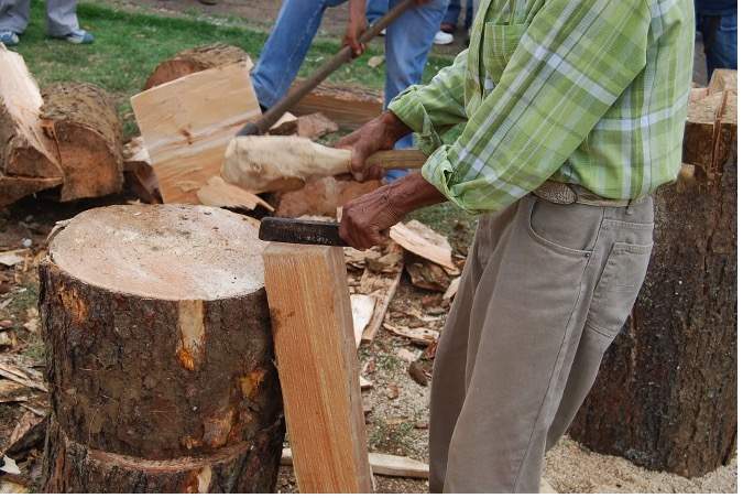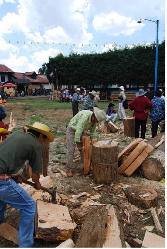 El concepto y ejecución de la técnica no han sido aspectos exclusivos de la destreza manual de los constructores, su fortaleza y capacidad de realización está fundada en una idea más amplia; es una cavilación anterior al proceso de construcción, por lo que su connotación es más extensa y está vinculada a la sensibilidad particular y grupal del futuro ejecutante y nunca se contrapone a la naturaleza, más bien la comprende y se adapta a ella (Jacinto, 1988, p. 49 como citado em Kubler, 1982, p. 178). Un ejemplo de este proceso es el relativo a la manufactura del tejamanil donde es indispensable el proceso anterior señalado, para poder seleccionar el material y obtener hojas de madera desgajada de alta calidad y utilidad para la construcción [ii] (Figura 10).