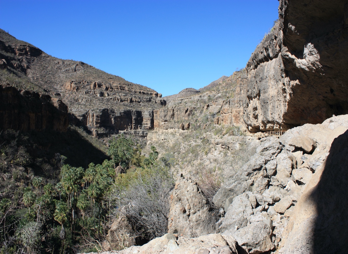 También en este peformance se puede visitar la Cueva El Ratón —la más cercana al rancho San Francisco de la Sierra, punto de entrada a la Sierra de San Francisco (fig. 4)—, pero sobre todo se visita el Cañón de Santa Teresa —donde están las cuevas Boca de San Julio, Los Músicos, La Pintada, La Soledad y Las Flechas—, el Cañón del Palmarito —que contiene las pinturas rupestres de La Serpiente, La Súper Nova, Corralitos, El Mono Parado, El Torotal y El Tabardillo— y el Cañón de San Gregorio —en el que se encuentran varios restos arqueológicos, además de las pinturas Gran Mural—. Para acceder a la ruta del Cañón de San Gregorio se requiere, además del guía local, de un custodio del INAH (1994), de manera que realizar esta ruta demanda de los turistas un alto grado de involucramiento con el patrimonio local.