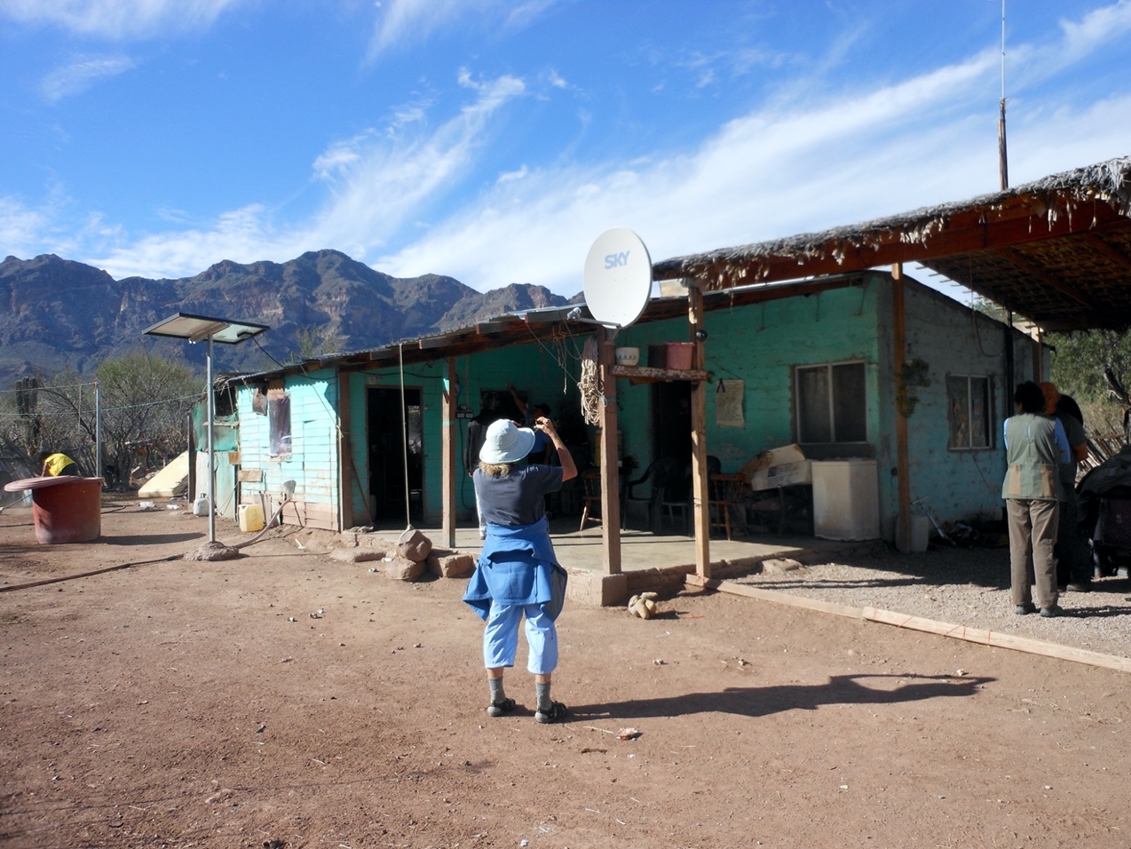 Pues sí, en Santa Teresa yo he visto al muchacho que está curtiendo también la piel. Yo siempre los llevo para que se den cuenta cómo viven ahí, me ha tocado llevar gente por ahí, llegan hasta la hornilla. Porque tienen una hornilla así de tierrita, donde hacen la comida y a la gente le llama mucho la atención eso. La casita es de palmas y tienen todo seco, las casas son de adobe, ya viejonas. También a la gente le llama cómo hacen bajar todo a base de burro. (Entrevista concedida n. 3, Rancho Guadalupe, México, 2015).