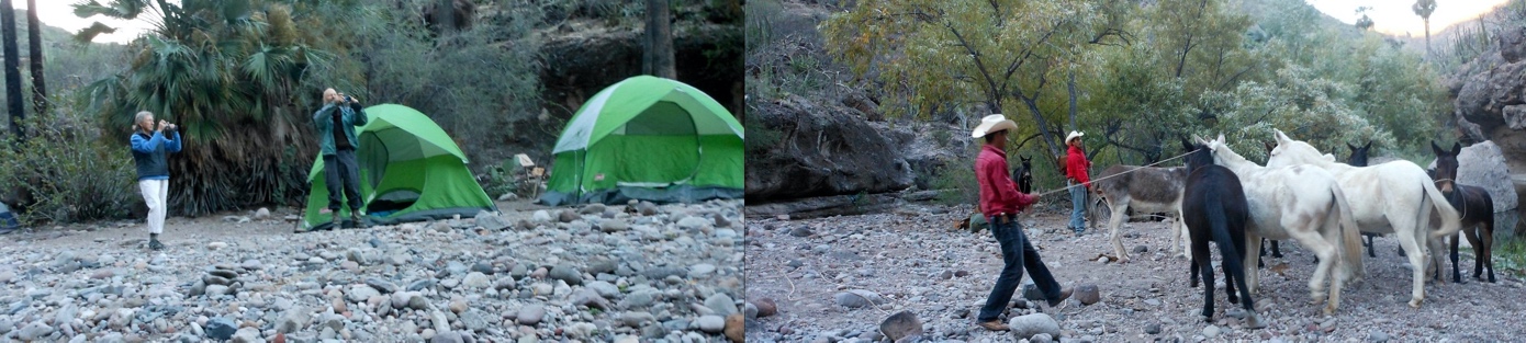 Antes de caer la noche el guía local indica el sitio para acampar; los turistas suelen preparar alimentos y bebidas, y es el momento en que todo el elenco del performance se reúne; los guías rancheros ocupan posiciones centrales al momento que los turistas hacen sus preguntas; se arrecia el deseo de penetrar a sus espacios vividos, sus casas, sus huertos, sus familias, el curtido de pieles, el trabajo de talabartería, la construcción de represas, la elaboración de quesos, la remembranza de su participación en documentales o películas, etcétera. Los guías foráneos, los guías rancheros y los turistas negocian estas visitas.