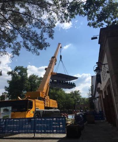A lo anterior se han sumado, en los últimos años, usos emergentes que tienen como escenario el espacio público, como es el encendido de la iluminación de la Catedral, el festival de mapping en edificios religiosos, en tanto que los espectadores se ubican en las plazas y vialidades cerradas al público de forma temporal para esos eventos (fig. 9). Asimismo, plaza y calles del centro histórico son utilizadas para conciertos de música, mítines políticos, eventos deportivos –que incluye una ciclovía en avenida principal cada domingo-, así como para el montaje de exposiciones artísticas, conciertos, etc. Estos atractivos han reforzado giros comerciales como cafeterías, bares y restaurantes que ubican a los comensales en portales y en torno a las plazas; asimismo, han aparecido ofertas novedosas como lo fue una exitosa temporada de Dinner in the sky realizada en el año 2019 (La Voz de Michoacán, 2019, abril 2) (fig. 11). El espacio público, al igual que hace siglos, sigue teniendo un uso comercial, pero se han proscrito formas de comercio tradicional para privilegiar nuevas ofertas atractivas para el turismo o consumidores locales de cierto poder adquisitivo. Un saldo positivo ha sido la generación de una importante concurrencia de la juventud local hacia esa área. Las nuevas generaciones han descubierto en el centro histórico un espacio para convivir y manifestarse de las formas más diversas, generando sentimientos de renovado aprecio y orgullo por su patrimonio edificado.