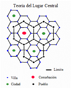 Esta teoría, del geógrafo alemán Walter Christaller, originalmente propuesta en 1933 y publicada hasta 1966, fue de las obras más destacadas dentro de la geografía cuantitativa y es una de las que más se ha intentado aplicar en diversas ramas de la disciplina, como geografía del transporte, urbana, y para la propia comprensión del turismo, entre otras (Agarwal, 2005; Oppermann, 1993). Para comprenderla, es relevante retomar la noción centralidad-región complementaria del mismo autor, en la cual sobresale la existencia de los bienes y servicios centrales, los cuales dan la jerarquía al correspondiente lugar central al que pertenecen; es decir, la jerarquía y la centralidad del lugar central están dadas por la categoría y el rango de bienes y servicios que puede producir y es capaz de ofrecer (Christaller, 1966).