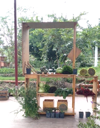 El diseño es otra opción paisajística, tanto por lo que fue el lugar – espacio público abandonado donde se sufrían robos – (fig. 1), como por los materiales que se elaboraron para cubrir sus necesidades específicas como: puestos móviles de venta de productos (fig. 2), jaulas para las gallinas ponedoras, camas de producción biointensiva (fig. 3), el sistema de lombricompostaje y las lámparas de recarga de electricidad con fuerza eólica.