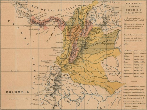 Como parte central de la implementación de la política aislacionista, decretada por el gobierno nacional para controlar la presencia de la lepra en Colombia, se creó en 1870 el lazareto de Agua de Dios, sitio de reclusión para enfermos de lepra provenientes de diferentes localidades del territorio nacional[ii]. Para la época, la actual República de Colombia estaba organizada política y administrativamente en nueve estados federados y soberanos: Magdalena, Bolívar, Santander, Boyacá, Cundinamarca, Cauca, Tolima, Panamá y Antioquia, bajo el nombre de los Estados Unidos de Colombia. El lazareto se ubicó en la zona occidental del Estado de Cundinamarca, como se puede observar en la figura 2[iii].