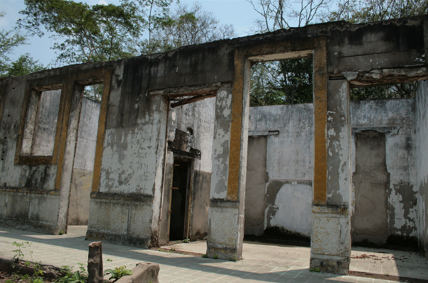 En las discusiones locales en Agua de Dios ha sido muy conflictivo el texto final del artículo 6° de la Ley pues señala que “Los inmuebles descritos en el presente proyecto de Ley, para todos los efectos de la presente ley no pueden estar en manos de particulares. En tal evento deben ser restituidos a su único propietario, el Sanatorio de Agua de Dios…” (Ley 1435 de 2011, p. 2). El Sanatorio es dueño de ocho de los dieciséis inmuebles declarados, lo que querría decir que, tendría derecho sobre los otros ocho. Teniendo en cuenta que estos inmuebles son de propiedad de comunidades religiosas, de asociaciones civiles, de particulares, o sencillamente son bienes públicos (como se incluyó en la tabla 1), la Ley representa un desconocimiento de sus derechos de propiedad y una forma de expropiación que desconoce procesos históricos de larga duración. De otra parte, dentro de los inmuebles declarados que son propiedad del Sanatorio de Agua de Dios se presenta un contraste muy fuerte entre el Edificio Carrasquilla que ha sido refuncionalizado para actividades administrativas y se encuentra en muy buen estado, y la casa de la desinfección, en ruinas como se observa en la figura 5. En este sentido, la Ley no ha contribuido con la resolución de conflictos existentes en torno a la propiedad de los inmuebles, como tampoco en la apertura de nuevas formas de gestión y financiación que permita revertir agudos procesos de deterioro físico y simbólico de los edificios y los sitios.