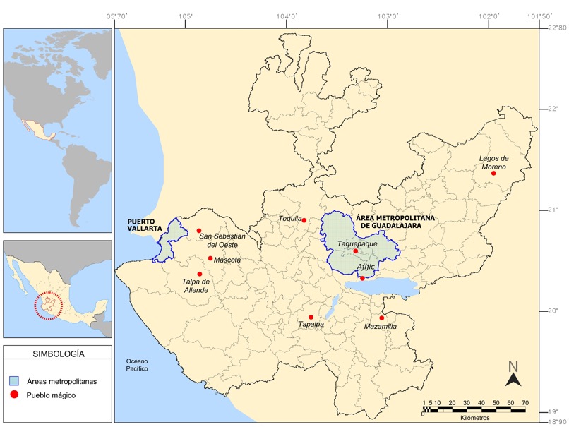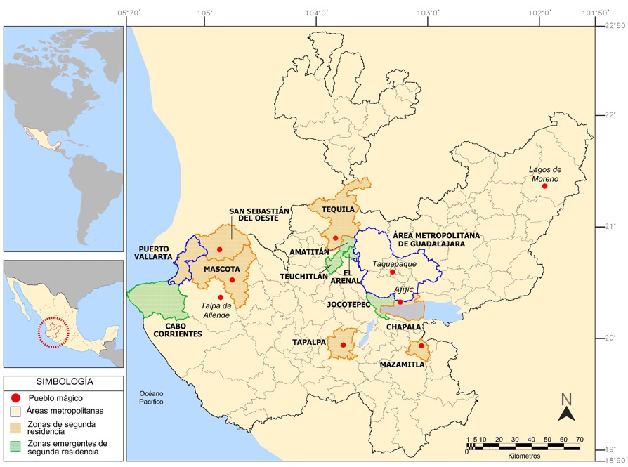En cuanto al área de estudio se seleccionaron las ciudades de Guadalajara y Puerto Vallarta, por ser las urbes más importantes del estado, de donde surge la demanda nacional de vivienda turística en el ámbito rural del estado. (figura 1).