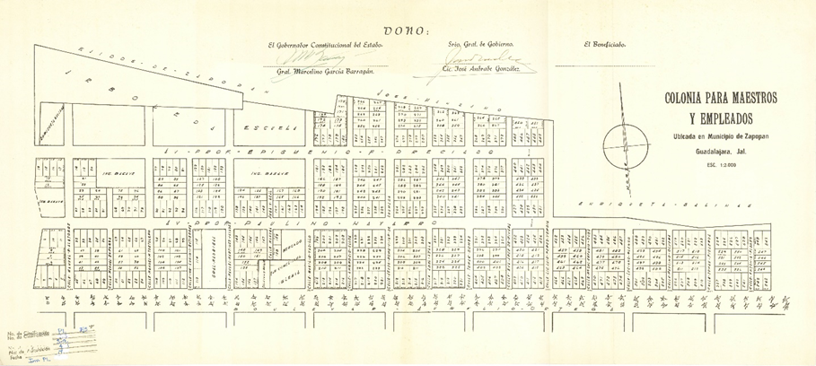 […] Los 549 lotes [ampliados posteriormente con diez lotes más en parte del área destinada a una arboledas] se cederán a igual números de servidores del Estado, que estén prestando sus servicios en la ciudad de Guadalajara, como sigue: 300 para maestros y 249 a los demás empleados, para la construcción de sus casas habitaciones. (El Informador, 1946a, pp. 1-2).
