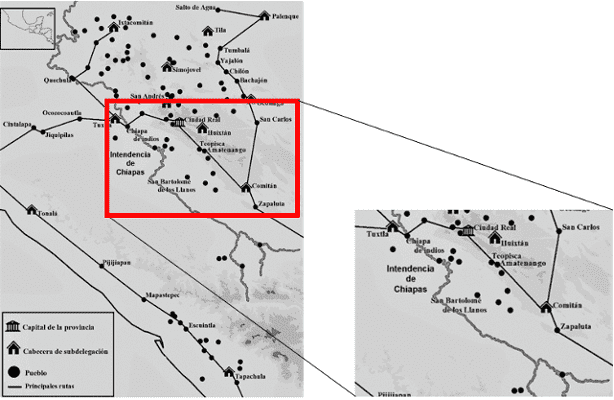 En cuanto a Comitán, remitiéndose al siglo XVII, ya era muy importante por la producción agrícola y ganadera de sus haciendas, lo que incentivó el traslado de españoles dueños de éstas que vivían en Ciudad Real hoy San Cristóbal de las Casas a residir en el poblado. Para este entonces Comitán aún era considerado como pueblo de indios hasta principios del siglo XIX, sin embargo, la buena productividad y crecimiento de las haciendas comitecas permitieron estrechas relaciones entre el centro de población y los espacios productivos (Álvarez et al., 2015).