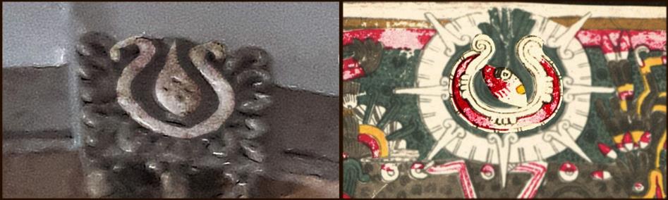 Los códices Nuttall y Borgia, muestran la luna sobre un espacio oscuro y estrellado, similar a una vasija cortada transversalmente que asemeja un hueso retorcido, con un pedernal o cuchillo en su interior. La luna con un pedernal en su interior representa el norte en la cosmovisión mesoamericana, la “región del Mictlán” (Nuttall, 2009, lám. 19a; Borgia, 1993, lám.18, 50) o tierra de los muertos, asociada con el jaguar, el agua, la lluvia, la vida de las plantas y la fertilidad.
