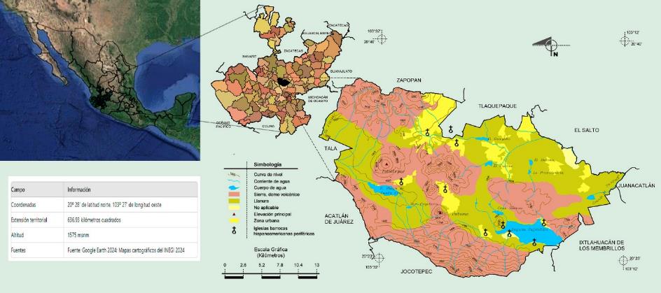 El territorio de Tlajomulco de Zúñiga se encuentra en el centro del estado de Jalisco, a 23 km al sur de Guadalajara. Este territorio destaca por su cuenca endorreica y elevaciones interiores que, junto con la diversidad de suelos, han configurado un entorno geográfico único que ha influido significativamente en la historia y cultura de la región durante el período virreinal. Este entorno ha proporcionado un hábitat adecuado para una rica variedad de flora y fauna, y ha sido crucial en el desarrollo de actividades humanas, particularmente en la construcción de estructuras religiosas y en la vida cotidiana de sus habitantes.