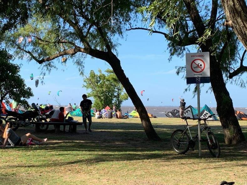 La más común que yo veo es juntarse a charlar, a tomar unos mates de los grupos, también se ve gente meditando, gente haciendo deporte como el yoga, meditación, como la soga entre dos árboles, el equilibrio, la soga, kitesurf, windsurf, gente que se mete a nadar, gente que hace malabares, O sea... actividades de recreación así al aire libre, un poco de música, mucha música.