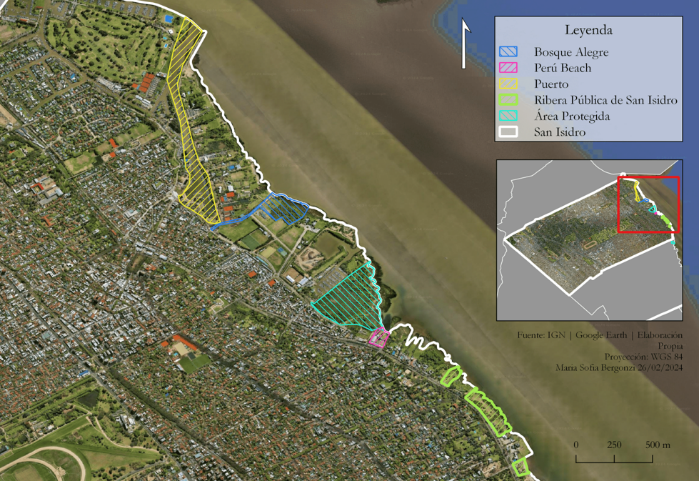 El partido de San Isidro se encuentra situado en el sector norte del Área Metropolitana de Buenos Aires (AMBA). Sin embargo, como bien platea Araujo (2022, p. 34), si bien se trata del análisis de un fragmento urbano del AMBA, cuyas características son resultado de una historia de poblamiento y organización territorial particular que atravesó por varios periodos, tales como su surgimiento como pueblo rural (1580 – 1850); su reconfiguración como zona de veraneo (Ríos, 2023) para luego convertirse en lugar de residencia (1850 – 1930); más tarde se consolida el Municipio de San Isidro en el AMBA dando lugar a un proceso de urbanización e industrialización (1930 – 1976); seguido de un periodo signado por un contexto neoliberal[ii] (1976 - 2000), actualmente el Municipio lleva adelante una política activa para la puesta en valor patrimonial cultural y natural, propuestas de preservación de la arquitectura patrimonial y los espacios públicos[iii] como la Ribera de San Isidro.