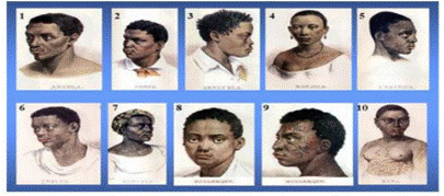 Este quadro do pintor alemão, Johann Moritz Rugendas, pintado em 1820, registra as imagens de pessoas africanas escravizadas de dez etnias: 1 - Angola, 2 - Congo, 3 - Benguela, 4 - Monjolo, 5 - Cabinda, 6 - Quiloa, 7 - Rebolo, 8 e 9 - Moçambique, 10 - Mina (figura 8).