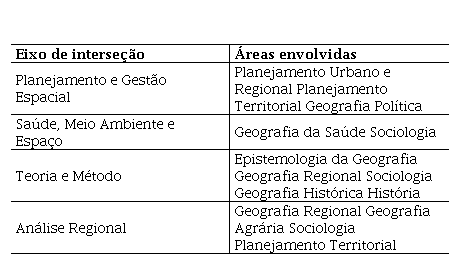 É importante destacar as inúmeras interseções que as pesquisas apresentaram com áreas do conhecimento que têm interface com a Geografia, como Sociologia, História, Planejamento e mesmo outras áreas da própria Geografia, o que possibilitou a ampliação da escala de análise, assim como a incorporação de novos conteúdos e abordagens teórico-metodológicas.