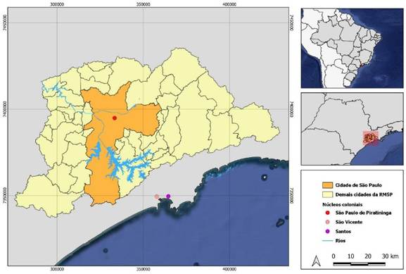 A ocupação colonial portuguesa de São Paulo de Piratininga, no século XVI, inseriu-se em um território habitado por povos indígenas há pelo menos 10 mil anos. Esse início é simbolizado pela expedição de Martim Afonso de Souza, em 1532, que fundou São Vicente e foi recebido por João Ramalho, cuja origem, possivelmente ligada a um naufrágio ou degredo, permanece incerta (Vilardaga, 2021; Nigriello, 2019; Prado Jr., 1998). Ramalho vivia entre os tupiniquins sob a liderança de Tibiriçá, em Santo André da Borda do Campo, simbolizando um ponto crucial no processo de colonização. Embora a presença de Martim Afonso tenha sido breve, sua passagem representou o início da exploração colonial.