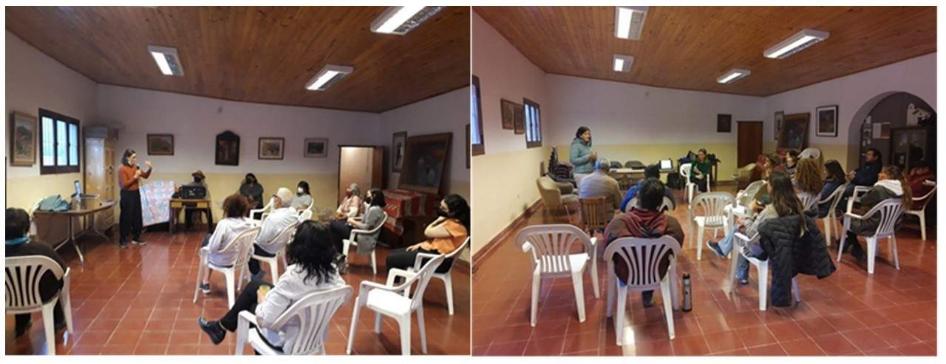 Este antecedente es muy importante, la modalidad comunitaria o participativa de su discusión quedó en la memoria de los purmamarqueños y luego pudimos registrarla en el trabajo de campo. Realizamos dos talleres participativos en el casco céntrico de Purmamarca, abiertos a todos los vecinos del pueblo en octubre de 2021 y otro en octubre de 2022. También se organizaron en la Biblioteca Popular y nos permitieron presentar el proyecto y comenzar a discutir sobre un diagnóstico para Purmamarca (figura 5). Como primera medida, los mismos