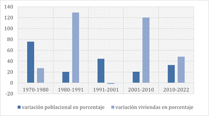 Entre los censos de 1991 y 2022 se registró un aumento en la población del departamento Lácar de más del 200%, pasando de 17.085 a 39.870 habitantes. Durante este periodo, el aporte migratorio se hace cada vez más visible, no solo por el aumento cuantitativo de la población, sino por las transformaciones que se producen en el espacio como consecuencia del tipo de productos inmobiliarios que surgen y por el dinamismo que adquiere este mercado. Las migraciones por amenidad han tenido importantes implicancias en el mercado inmobiliario de toda la región, contribuyendo a un proceso de aumento de la demanda y del precio del suelo, además de la profundización de disputas territoriales(Otero & González, 2020).