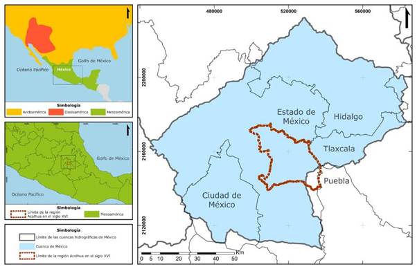 Específicamente en el posclásico tardío (1250 al 1521 d.C) y en la cuenca de México se formaron varias regiones culturales nahuas: los nahuas tepanecas, los nahuas xochimilcas, los nahuas chalcas, los nahuas mexicas, los nahuas colhuas, los nahuas acolhuas, entre otros grupos hasta de otras culturas como otomíes y mixtecos (Valiñas, 2023). En este artículo sólo nos enfocaremos en hablar de los nahuas acolhuas ubicados en la zona centro-oriente de la subcuenca de México y el Lago de Texcoco, en el posclásico tardío (figura 1).