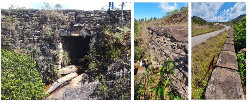 Os remanescentes arquitetônicos do referido trajeto representam um legado de imensa relevância, não apenas para a compreensão do território, mas, também, para a preservação da memória e de sua identidade. As estruturas, como pontes, bueiros, arrimos, redes de drenagem, leitos empedrados, são testemunhos da composição arquitetônica e da engenharia do século XIX, refletindo a estética em simbiose com a complexidade, tanto para compor o panorama natural quanto para gerar soluções para a transposição do relevo montanhoso com seus cursos d’água encachoeirados: a tectônica das edificações, com suas formas e materiais empregados, revela uma interação interessante e harmoniosa com o patrimônio natural, a qual qualifica e especifica a paisagem.