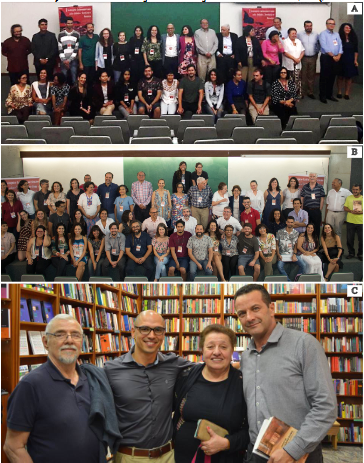 Notas: A [1º Seminario Ciudades, Territorio y Memoria, UnB, marzo de 2018, con el lanzamiento del primer número de PatryTer y la presencia de Amalia Inés Lemos y otros colegas de Brasil, México, Cuba, Costa Rica e Panamá]; B [2º Coloquio Latinoamericano sobre Urbanización y Patrimonialización – CLUP/Brasilia, octubre de 2019, con la participación de Geraiges de Lemos y otros docentes de distintos países latinoamericanos]; C [Lanzamiento de Cidades da patrimonialização global, mayo de 2015, Geraiges de Lemos fue autora del prefacio y estuvo acompañada también de Francisco Capuano Scarlato y Luis Bittar Venturi de la USP].