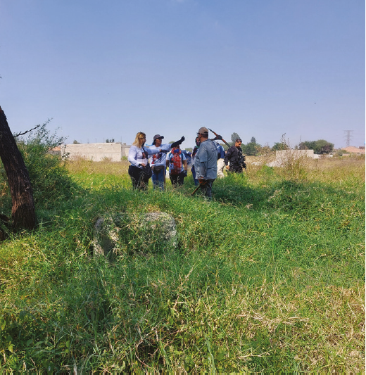 Antes de partir, un funcionario de la Comisión de Búsqueda se acerca a la portavoz del colectivo que organiza esta búsqueda para decirle que necesita hablar con nosotras, ya que es imperativo presentarnos el contexto del lugar al que acudiremos. Quieren exponernos un documento que resume los elementos que caracterizan a estas colonias a la par de un desglose de los grados de marginalidad y el registro de pandillas que se han detectado a los alrededores. El funcionario repite que esta información es importante. Algunas madres se molestan porque la reunión nos quitará tiempo para la búsqueda; además, al estar cercano el invierno, oscurece más temprano. Algo nervioso, el expositor se explaya hablándonos sobre los índices de criminalidad, de los bajos niveles de escolaridad e incluso del poco acceso a internet que hay en dichas colonias. Datos importantes para comprender lo que ahí ocurre, pero que poco aportan para lo que tenemos planeado, parecen decir los rostros de algunas de las buscadoras. Una de las señoras señala que, aunque todo eso parece ser muy relevante, no podemos retrasarnos más: “Esto tuvo que haberse hecho antes, porque nos están quitando tiempo a nosotras”, expresa la señora Mirna. El expositor habla de manera atropellada y pide unos minutos para solo mencionar la parte final, la fundamental para hoy.