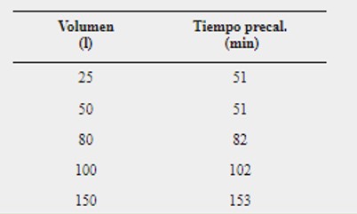 Dtprecal. = Cagua·Mtanque·DTcal. / Pcal. (1)