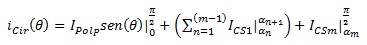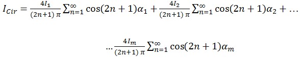 Donde k, es el índice que presenta el valor de la corriente del pulso y α. el ángulo cuando comienza ese pulso, entonces, la corriente del circuito se puede determinar según la ecuación: