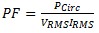 Como no hay desfase entre voltaje y corriente, el factor de potencia se obtiene según: