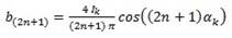 Finalmente, para calcular los valores de los armónicos de la corriente, se determinan los armónicos de un solo pulso y para formar la onda completa de la corriente de entrada, se suma cada pulso, con diferente ancho y amplitud. Debido a que la función de la corriente es impar, entonces an = 0 para todo .. y como el pulso es simétrico con respecto a π/2, para cada pulso se cumple que el armónico bn tiene un valor nulo si . es par. Entonces: