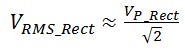 Donde: VP_Rect es Vp de la línea menos la caída de voltaje de dos diodos del puente cuando conducen.