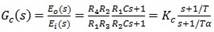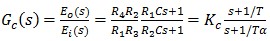 Este controlador combina ambas redes (adelanto y atraso) en un solo elemento de control. El diseño de los compensadores se realiza por separado, la ecuación 12 representa la función de transferencia clásica del mismo.