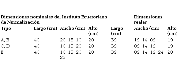 Todo el procedimiento de preparación de las muestras se llevó a cabo siguiendo las normas internacionales de cemento y concreto de la Sociedad Americana para Pruebas y Materiales (ASTM, según sus siglas en inglés), donde el ensayo normalizado para resistencia a la compresión de especímenes de bloques de concreto, corresponde a los códigos ASTM C39, C31, C150, C617, C1077 y C1231[19]. Después de 30 días de curado, los bloques fueron retirados del tanque de curado. Seguidamente fueron medidos en peso y se les realizó el ensayo de resistencia a la compresión. Los resultados fueron comparados con los estándares de NTE INEN [1928].