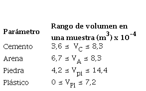 Cabe señalar que todos los valores volumétricos de la Tabla 2 corresponden a una muestra de bloque de concreto hueco de 40x20x20 cm.. La precisión de la ecuación de regresión polinómica lineal en los parámetros (Ecuación 1), se muestra en la Tabla 3, pudiéndose decir que la misma se ajusta bien a los valores experimentales.