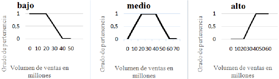 . Las consultas particionadas pueden extenderse por medio de la lógica difusa. Para ejemplificar las consultas particionadas difusas, considere los trapecios de la Figura 1 y la siguiente consulta que determina el volumen de ventas de todos los títulos más recientes de 1990 para cada clase de ventas (bajo, medio, alto): SELECT label(ventas), count FROM cartelera WHERE año > 1990GROUP BY label(ventas) USING p(ventas) = {bajo, medio, alto}.