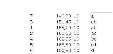 En cuanto a las diferentes escalas de maduración del fruto, las diferencias encontradas en la prueba de Tukey (p<0,05) mostraron que T7, presentó el menor valor de maduración (valor de 1: coloración verde), observándose que los tratamientos T1, T3 y T6, presentaron valor de 7 en la escala para la evaluación del grado de maduración en el banano, llegando a maduración completa. T5 presentó un valor de 2,5; T2 y T4: valores de 4,5 (Tabla 3).
