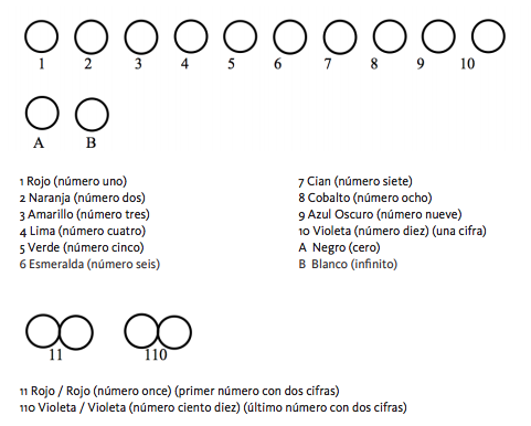 El punto de partida es establecer el único símbolo denominado número que incorporará en su superficie interna el color de su valor. Veamos un modelo de equivalencia bisistemática: