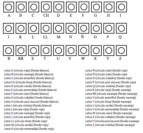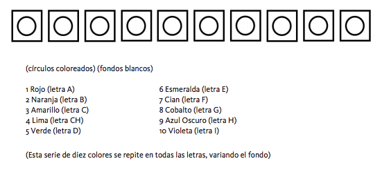 Así como la Cromatemática utiliza números cromáticos, la Cromolengua usa letras cromáticas.