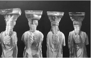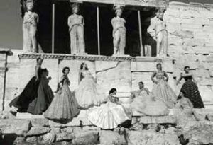 Esta distinción en la igualdad, la individualidad que se funde en la pluralidad de lo femenino, se aprecia igualmente en las cariátides del Erecteion de Atenas, otro grupo de muchachas atenienses petrificadas para sustituir a las columnas del porche del templo más peculiar de la Acrópolis. También ellas, que fueron denominadas kórai desde la Antigüedad, de una manera menos variada mantienen una cierta individualización. Aparentemente iguales, sus peplos áticos, sus peinados y su movimiento es diferente en todas ellas, volviendo a convertirlas en un desfile de modelos de una misma colección, pero en distintas versiones. Este matiz posiblemente lo intuyó Christian Dior cuando, para presentar su colección en 1951, fotografió a sus modelos, todas ellas diferentes, pero todas vestidas de noche bajo el pórtico de las cariátides. Estas imágenes de mujeres a la moda de la Antigüedad -tanto las kórai arcaicas como las cariátides clásicas- muestran la esencial tensión entre la diferencia y la uniformidad que la moda entraña, la necesidad de mostrar la individualidad a través de la composición de la propia imagen y a la vez la inevitabilidad de vestir “lo que se lleva”, de adecuarse a una propuesta estética que debe ajustarse a unos parámetros que faciliten la integración en la colectividad.