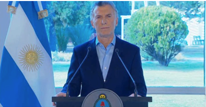 Este es un indicio muy potente de búsqueda de unidad nacional porque remite a las escenografías características de Cambiemos, el espacio político del jefe de gobierno de la ciudad de Buenos Aires, Rodríguez Larreta, y del ex presidente Mauricio Macri, en el que eran muy comunes los espacios abiertos y el verde de la naturaleza, como en el siguiente ejemplo del discurso de Macri (14/08/2019):
