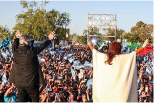 Las dos presidencias de CFK (2007-2011 y 2011-2015) se caracterizaron por las conmemoraciones y los rituales realizados en Plaza de Mayo: grandes multitudes, banderas, pancartas, cánticos, músicos y músicas en escena, discursos monologales extensos. No es casual entonces que, tras el triunfo electoral del 27 octubre de 2019, el lugar privilegiado para volver a encontrarse con “el pueblo” sea la principal plaza de Buenos Aires: el espacio público en el que tuvieron lugar no solo la mayoría de las celebraciones kirchneristas, sino también grandes acontecimientos históricos del peronismo, en particular, y de la Argentina en general.