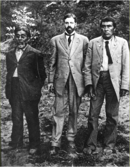 Una cosa más hay que advertir aquí. El tercer hombre de la foto es un enigma: las manos escondidas, el traje desaliñado, la mirada cansada y cubierta por los gruesos y redondos lentes. A diferencia de los otros, no vemos sus ojos directamente; sus lentes, artificio técnico que le permiten ver mejor, nos obstruyen el acceso a su mirada. Su mirada está para nosotros vedada, quebrada. Tiene un extraño estatuto: es patentemente partícipe, pero también es un extraño. Es, quizás como nosotros, un testigo. Y como nosotros, lleva su mirada mediada por un artificio técnico, allá los lentes, aquí la propia fotografía que ahora miramos. No es occidental, pero tampoco deja de serlo. En él el efecto de la colonización resulta más marcado que en Ishi. Es el único de los tres que para nosotros no tiene nombre, puede ser cualquiera, como nosotros.