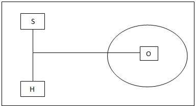 En lingüística cognitiva, el término construal se utiliza para hacer referencia a la habilidad de la mente humana para concebir y presentar una misma situación o suceso de formas diferentes (Langacker, 1987, 2008). Esta operación mental implica un ejercicio de coordinación cognitiva intersubjetiva que se representa gráficamente como una composición visual en la que un hablante S (speaker) y un oyente H (hearer) son, al mismo tiempo, usuarios del lenguaje y coconceptualizadores que concentran su atención en un objeto de atención compartida O (object). En esta representación (figura 1), el objeto está rodeado por un cuadrado, que muestra su zona de atención principal (onstage), y un círculo, que delimita su zona de atención secundaria (offstage).