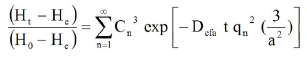 Defa: coeficiente de difusión efectivo del agua. Los subíndices 0, t y e se refieren a las condiciones iniciales, a cualquier tiempo t y al equilibrio, respectivamente.