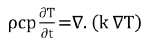 Donde ρ es la densidad, cp el calor específico, k la conductividad térmica, t el tiempo y T la temperatura.