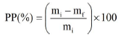 Las ecuaciones para determinar la humedad (H), los sólidos totales (ST), la pérdida de peso (PP), la pérdida de agua (PA) y la ganancia de sólidos (GS) se detallan a continuación: