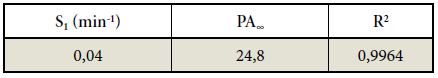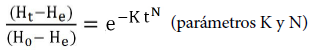 Donde PA∞ es la pérdida de agua en el equilibrio y S1 es la velocidad de pérdida de agua. La ecuación precedente suele linealizarse y escribirse de la siguiente forma: