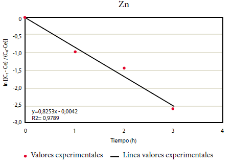 H se reemplaza por C (concentración) en la Ecuación 12, cuando se calcula la difusividad efectiva de los iones calcio o zinc: