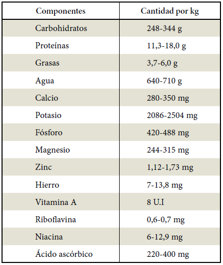 La batata o camote (Ipomoea batatas L. o Lam) puede ser considerado un alimento funcional por sus compuestos con actividad antioxidante como carotenos, vitamina E, antocianinas, polifenoles y minerales. La Tabla 1 presenta la composición de la batata.