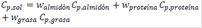 Para el cálculo del calor específico (CP) del sólido se utilizó el promedio pesado de los CP de sus componentes mediante sus fracciones másicas, wi (Migliori, et al., 2005):